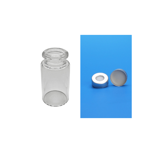 Convenience Pack: Clear Headspace Vial 10mL Flat Bottom, Beveled Top & Silver PTFE/Silicone Crimp Cap