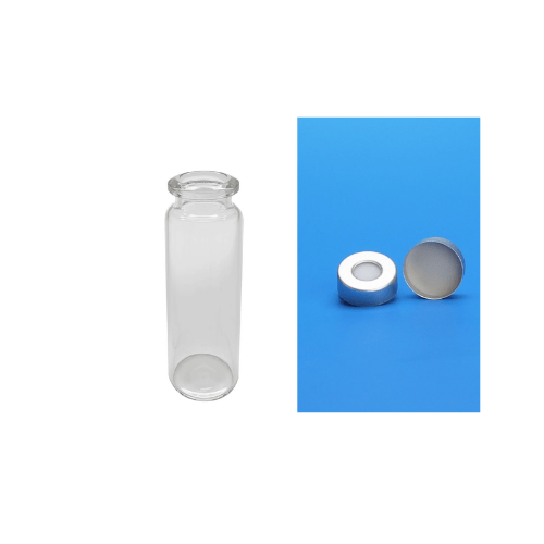 Convenience Pack: Clear Headspace Vial 20mL Flat Bottom, Beveled Top & Silver PTFE/Silicone Crimp Cap