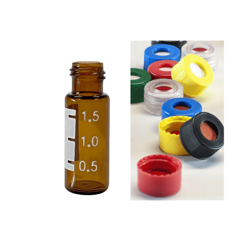 Convenience Pack: 2mL Amber R.A.M.™ Vial w/ Markings & 9mm PTFE/Silicone Lined Ribbed Cap-Black